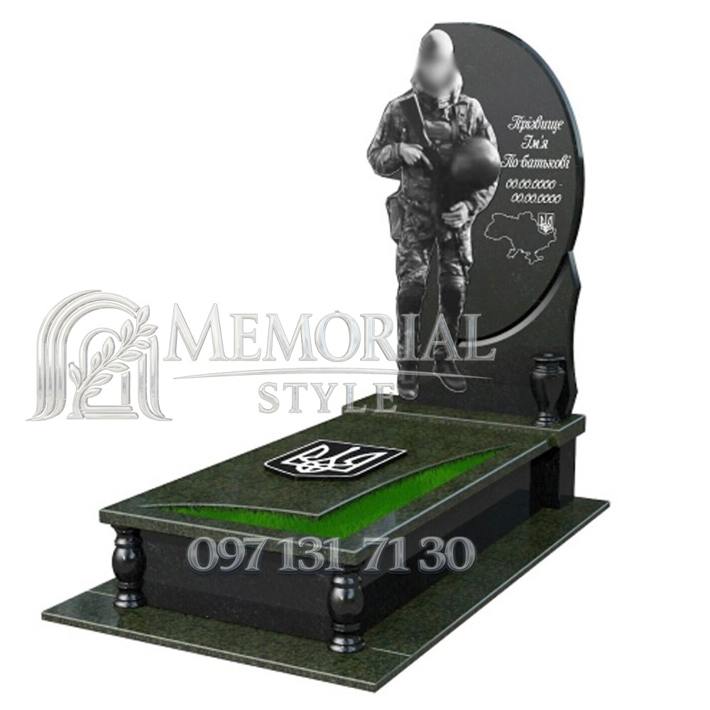 Гранітний пам’ятник для військового з можливістю вибору відкритого або закритого квітника. Орієнтовний термін виготовлення — 8–16 тижнів. За бажанням клієнта надаємо послуги доставки та професійного встановлення.