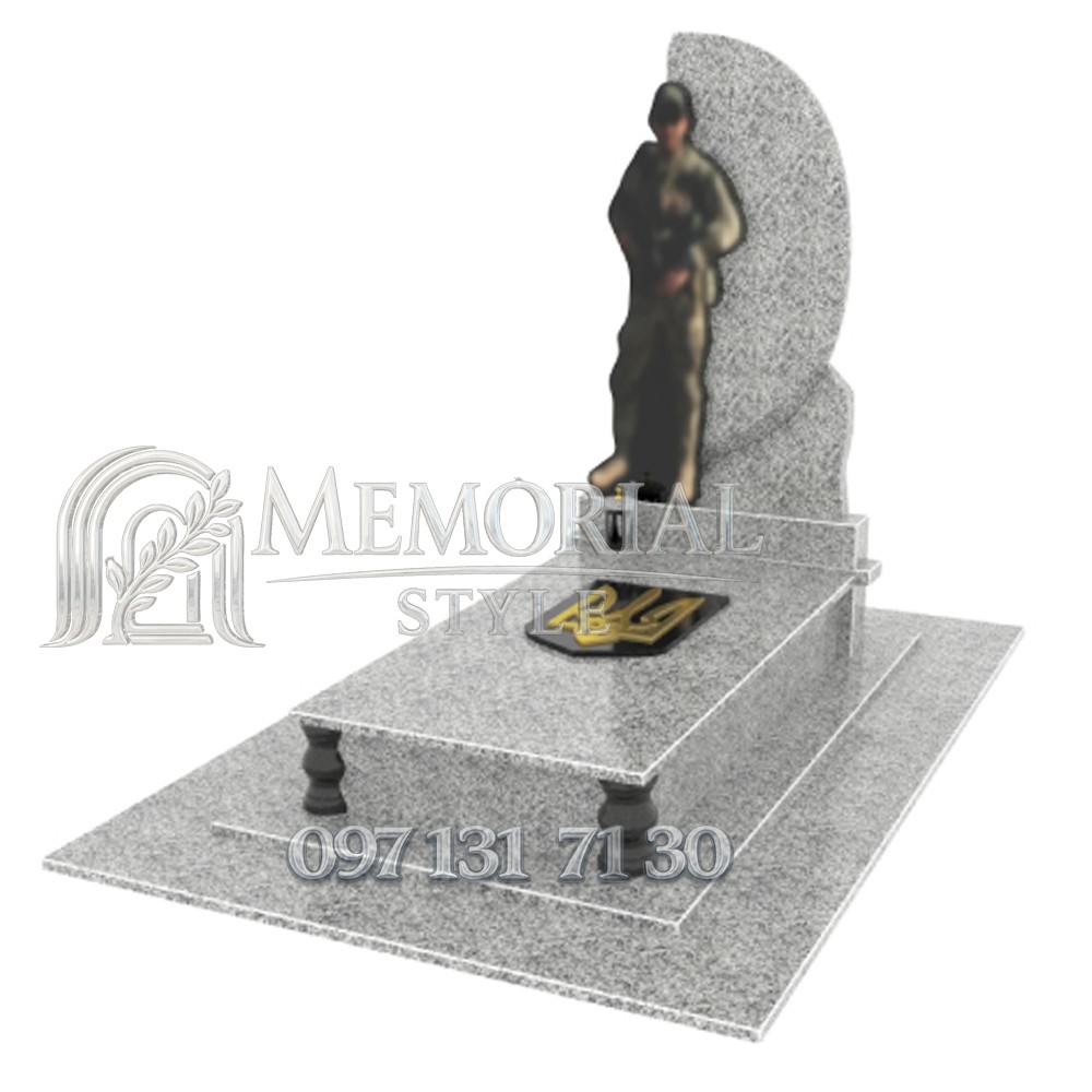 Гранітний пам’ятник для військового з можливістю вибору відкритого або закритого квітника. Орієнтовний термін виготовлення — 8–16 тижнів. За бажанням клієнта надаємо послуги доставки та професійного встановлення.
