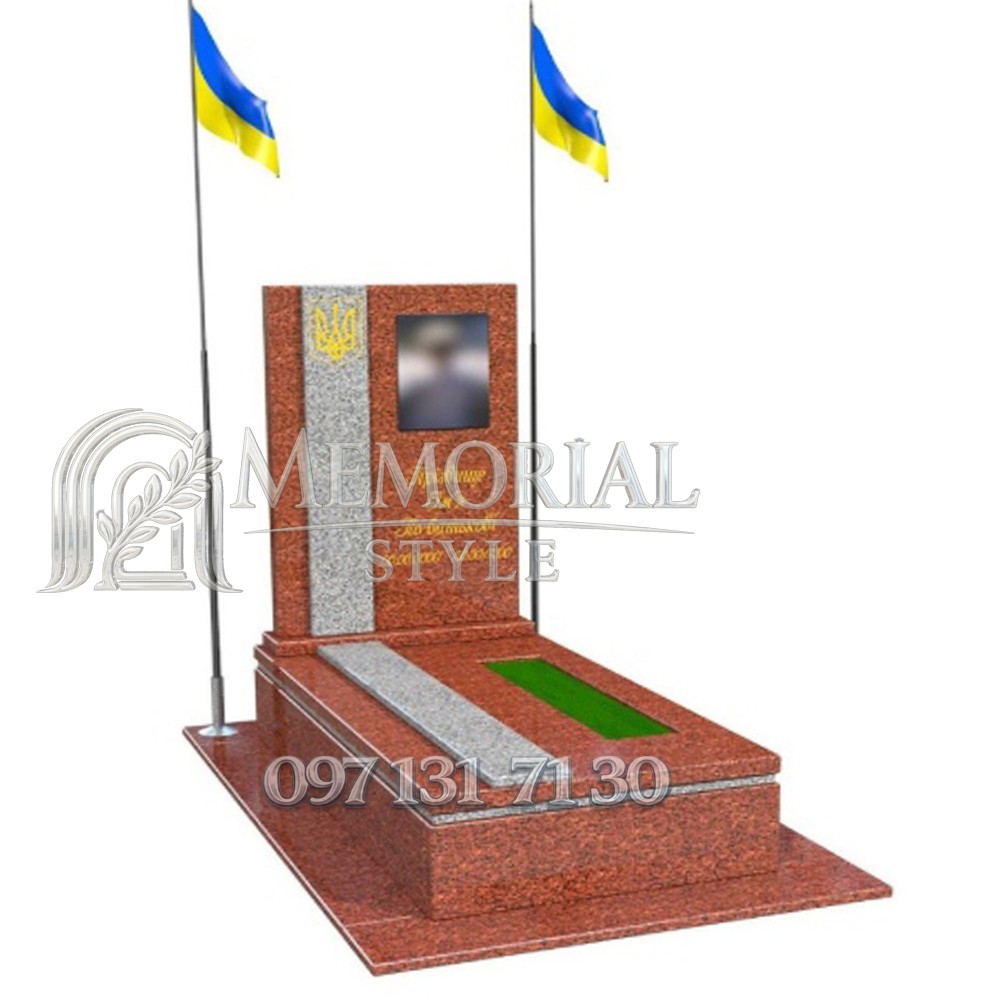 Гранітний пам’ятник для військового з можливістю вибору відкритого або закритого квітника. Орієнтовний термін виготовлення — 8–16 тижнів. За бажанням клієнта надаємо послуги доставки та професійного встановлення.